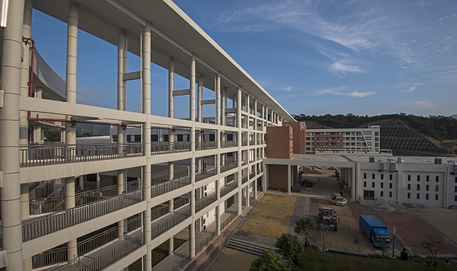 學校教學、運動及生活三大區(qū)域劃分合理,相對獨立。學校實行全寄宿封閉式精致管理,現(xiàn)有5棟學生宿舍樓;擁有雙層體育館,400米8道標準田徑場,各類體育場地面積共計24000平方米;擁有高端報告廳、音樂廳、會議廳、千人會堂、面朝大海的美術(shù)樓、音樂樓、信息樓和2000平方米藏書豐富的圖書館,圖書10萬余冊;擁有3個深圳市A類師生食堂,菜式品種豐富,營養(yǎng)可口,安全放心,可供3000人同時用餐。