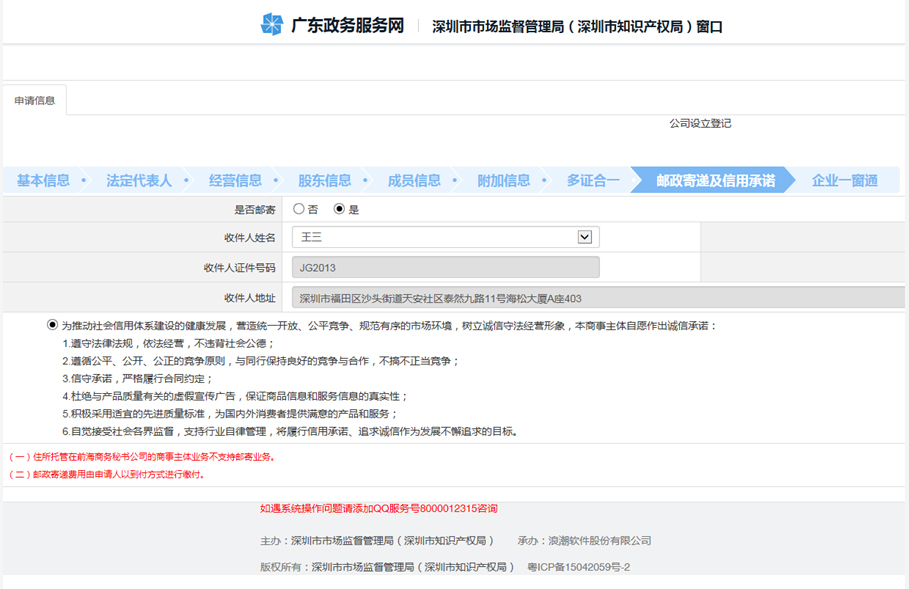 第九步:審批通過后,經(jīng)辦人將會收到短信通知,如需領(lǐng)取營業(yè)執(zhí)照,有三種渠道辦理:一是在設(shè)立 登記時申請郵政寄遞服務(wù),二是通過設(shè)置于試點(diǎn)行政服務(wù)大廳或試點(diǎn)銀行網(wǎng)點(diǎn)的24小時自助 打照機(jī)辦理,三是經(jīng)辦人或法定代表人憑身份證原件可以就近到各區(qū)行政服務(wù)大廳窗口領(lǐng)取, 支持全城通辦。