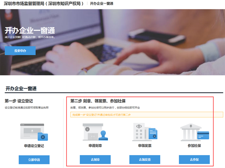 深圳市市場監(jiān)管局、市公安局、深圳市稅務(wù)局、市人社局、人民銀行深圳中心支行五個部門通過互聯(lián)網(wǎng)大數(shù)據(jù)進(jìn)行信息對接,實現(xiàn)各部門系統(tǒng)的互聯(lián)互通,企業(yè)設(shè)立、刻章、申領(lǐng)發(fā)票、員工社保登記和銀行開戶預(yù)約同步辦理,推行企業(yè)開辦“一次提交、共享交換、同步辦理、限時辦結(jié)”的“開辦企業(yè)一窗通”新模式。