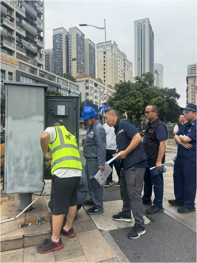 為深入學(xué)習(xí)貫徹習(xí)近平總書記關(guān)于安全生產(chǎn)的重要論述和重要指示批示精神,認(rèn)真貫徹落實省、市、區(qū)委、區(qū)政府有關(guān)會議精神和工作部署。4月30日,區(qū)發(fā)展改革局由張柯副局長帶隊組織開展轄區(qū)2025“隱患排查治理年”專項行動-汛期戶外(易澇區(qū)域)電力設(shè)施安全隱患排查工作,區(qū)應(yīng)急局、鹽田消防大隊、鹽田供電局、各街道辦、鹽田公安分局、鹽田交警大隊,深圳市市容景觀事務(wù)中心、深圳市信息基礎(chǔ)設(shè)施投資發(fā)展有限公司、深圳市鴻發(fā)建工有限公司及第三方專業(yè)檢測機(jī)構(gòu)-深圳電氣科學(xué)研究院等14個單位參與檢查工作。