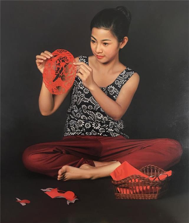 圖為在第十五屆文博會(huì)嘉長(zhǎng)源國(guó)際文化產(chǎn)業(yè)園分會(huì)場(chǎng)展示的李宏宇油畫(huà)作品《立春》。