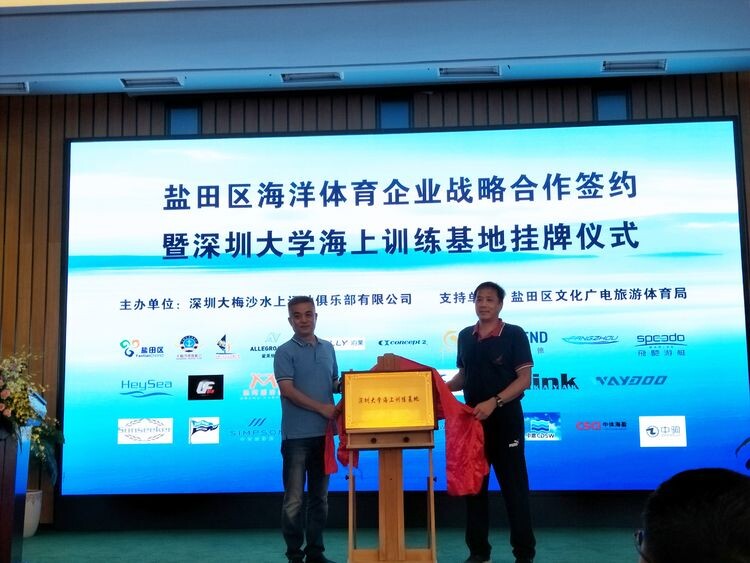 2020年6月30日下午,由深圳大梅沙水上運動俱樂部有限公司主辦,鹽田區(qū)文化廣電旅游體育局作為支持單位的鹽田區(qū)海洋體育企業(yè)戰(zhàn)略合作簽約暨深圳大學海上訓練基地掛牌儀式,在大梅沙國際水上運動中心舉辦。