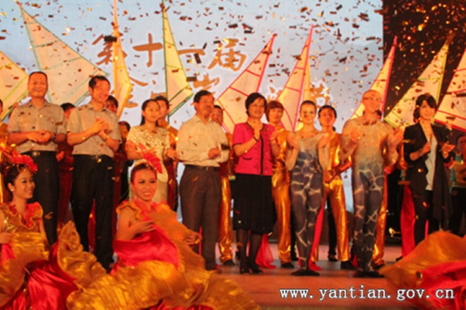 鹽田區(qū)依山傍海,自然環(huán)境得天獨(dú)厚,海岸線蜿蜒曲折,沙灘、礁石、島嶼錯落有致,充滿“小而精、秀而美”的特色神韻,是深圳乃至整個華南地區(qū)最為美麗的“黃金海岸”之一。十月的鹽田依然綻放著夏日的熱情,十月的鹽田也同樣描繪著秋日的清新。藍(lán)色的鹽田,青春又活力;藍(lán)色的鹽田,浪漫又激情,藍(lán)色的鹽田,從容又和諧,藍(lán)色的鹽田,快樂又奔放。隨著副市長吳以環(huán)的一聲宣布,第十一屆深圳黃金海岸旅游節(jié)正式開幕。吳以環(huán)、郭永航、杜玲、杜勤共同點(diǎn)亮了開幕水晶球。本次開幕式文藝匯演分為四個篇章,分別是“藍(lán)藍(lán)的鹽田”、“炫彩的生活”、“飛揚(yáng)的激情”和“暢想的未來”。一個個精彩絕倫的表演不斷將開幕式推向高潮,為觀眾獻(xiàn)上了一場文藝盛宴。