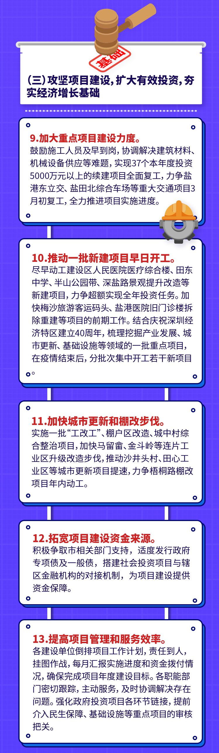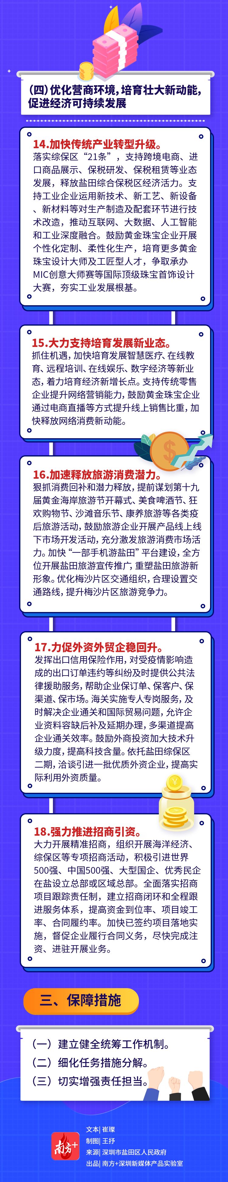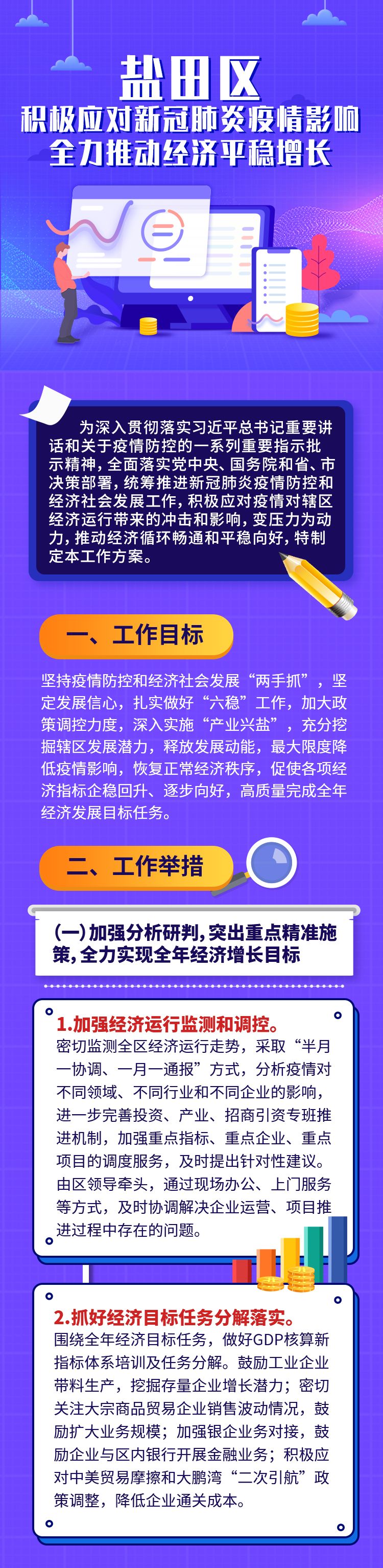 3月4日,為統(tǒng)籌推進新冠肺炎疫情防控和經(jīng)濟社會發(fā)展工作,鹽田區(qū)出臺《鹽田區(qū)積極應對新冠肺炎疫情影響全力推動經(jīng)濟平穩(wěn)增長工作方案》,重磅推出干貨滿滿的18項工作舉措,堅持疫情防控和經(jīng)濟社會發(fā)展“兩手抓”,堅定發(fā)展信心,扎實做好“六穩(wěn)”工作,加大政策調(diào)控力度,深入實施“產(chǎn)業(yè)興鹽”,充分挖掘轄區(qū)發(fā)展?jié)摿?,釋放發(fā)展動能,最大限度降低疫情影響,恢復正常經(jīng)濟秩序,促使各項經(jīng)濟指標企穩(wěn)回升、逐步向好,高質量完成全年經(jīng)濟發(fā)展目標任務。