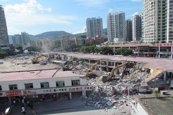 2014年8月鹽田區(qū)依法強(qiáng)制拆除“2號(hào)地塊”49家違法臨時(shí)商鋪