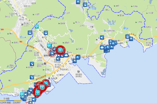 鹽田區(qū)環(huán)境監(jiān)測監(jiān)控系統(tǒng)二期監(jiān)測點(diǎn)位圖