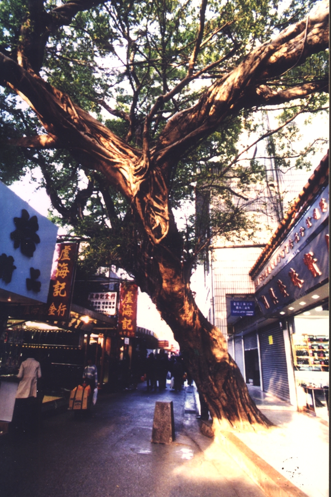 這棵古榕樹位于中英街第四號界碑旁,已有一百多年的歷史。樹干蒼勁,枝繁葉茂,由于樹樹根長在深圳一方,葉枝覆蓋香港一方,因而構成一幅奇妙的景觀,被喻為"根在祖國,葉覆香港",成為許多文人墨客進行采風和文藝創(chuàng)作的題材。這棵古榕樹與第四號界碑形影相依,構成了中英街上一道自然與人文相互映襯的特殊風景,同時也見證了中英街的百年滄桑和屈辱歷史。
