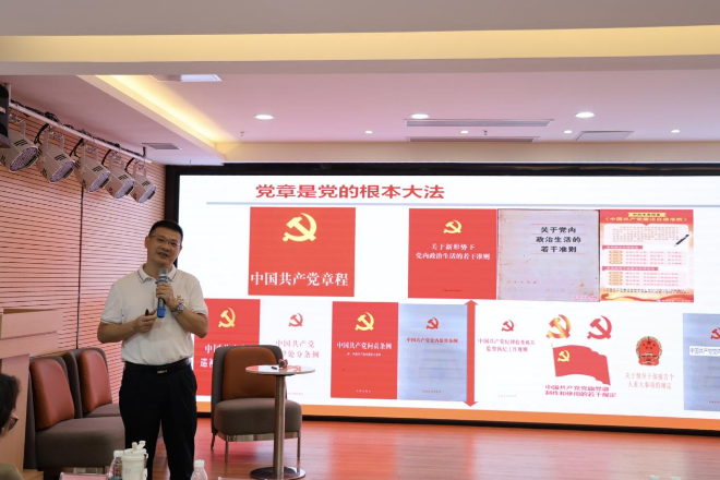 活動(dòng)延續(xù)海濤社區(qū)近十年來(lái)“七一”黨員論壇的一貫流程,主要分奏唱國(guó)歌、重溫入黨誓詞、慰問(wèn)五十年以上黨齡老黨員、黨員論壇、專(zhuān)題黨課等五個(gè)環(huán)節(jié)開(kāi)展,內(nèi)容緊湊,張弛有度,在打造經(jīng)典組織生活形式的同時(shí),更是結(jié)合當(dāng)下黨紀(jì)學(xué)習(xí)教育主題,邀請(qǐng)區(qū)委黨校邢國(guó)宏教授為全體黨員開(kāi)展《黨章:最根本的黨內(nèi)法規(guī)》專(zhuān)題黨課。
