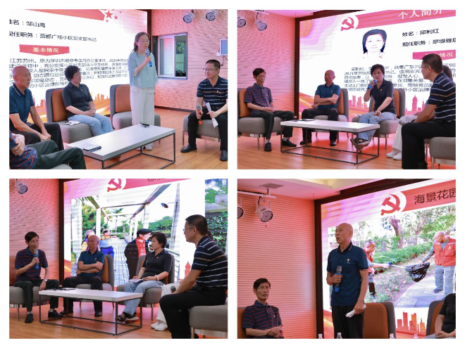 活動特別邀請了4位黨員先鋒代表結合小區(qū)黨支部工作實際,分享特色經(jīng)驗:藍郡廣場小區(qū)黨支部書記鄒山鷹充分發(fā)揮小區(qū)黨支部戰(zhàn)斗堡壘作用,多維度深耕基層治理工作,為社區(qū)發(fā)展注入紅色動能;棕櫚灣小區(qū)黨支部委員張冠南在推動小區(qū)公共事務解決問題中發(fā)揮關鍵性作用,筑起小區(qū)和諧發(fā)展“護城河”;翠堤雅居小區(qū)黨支部書記邱利紅帶領支部黨員以“為民服務、凝聚人心、迎難而上”的使命擔當作為,為基層治理注入強勁動力;海景花園二期小區(qū)黨支部書記呂占元以“銀齡先鋒”身份,積極帶領小區(qū)支部黨員、熱心居民群眾在小區(qū)日常治理中發(fā)揮作用。