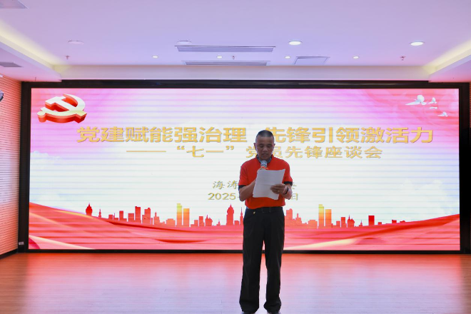 為慶祝中國共產(chǎn)黨成立104周年,深入貫徹落實黨建引領基層治理工作要求,6月26日下午,海濤社區(qū)黨委組織開展“黨建賦能強治理 先鋒引領激活力”——“七一”黨員先鋒座談會主題活動,活動由海濤社區(qū)黨委副書記李怡龍同志主持,現(xiàn)場邀請了“兩代表一委員”、街道掛點領導以及轄區(qū)近百名黨員參與。