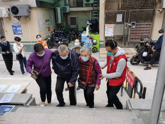 社區(qū)黨委班子成員帶領(lǐng)采樣醫(yī)務(wù)人員、社區(qū)工作人員、黨員志愿者組成“流動檢測小分隊”,為老人、孕婦、行動不便等特殊人群提供上門檢測服務(wù)。工作人員協(xié)助老人填寫完整信息,為采樣對象掃粵核酸碼,再按照相應(yīng)的操作流程進(jìn)行核酸采樣,為轄區(qū)居民織牢“防疫保護(hù)網(wǎng)”。