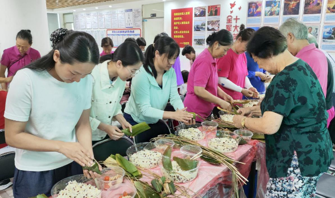 端午節(jié)前夕,濱海社區(qū)黨委組織開(kāi)展包粽子活動(dòng),黨員志愿者、居民骨干紛紛參與活動(dòng)。大家圍坐一堂,切磋技藝,互幫互學(xué),巧手翻飛間,粒粒飽滿(mǎn)的糯米與碧綠的粽葉交織,化為一個(gè)個(gè)棱角分明的端午“信物”?,F(xiàn)場(chǎng)氣氛溫馨融洽,鄰里情誼在指尖的交流與話(huà)語(yǔ)的分享中悄然升華。包粽子不僅是一場(chǎng)生動(dòng)的民俗體驗(yàn),更成為密切黨群干群關(guān)系的有效紐帶,社區(qū)溫馨和諧氛圍愈發(fā)濃厚。