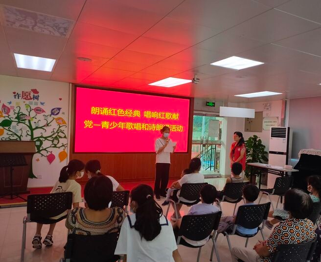 紅火的七月,正值青少年快樂的暑假時光,為慶祝中國共產(chǎn)黨成立100周年,向黨的百年華誕獻禮,濱海社區(qū)黨群服務中心于7月13日組織青少年開展了“朗誦紅色經(jīng)典 唱響紅色歌曲”紅色主題活動。