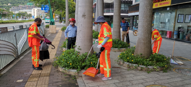 行動期間,參加人員對優(yōu)品藝墅、海語東園、云頂天海3個小區(qū)外圍環(huán)境進行全方位清潔。市政保潔人員認真清掃街面,重點對道路兩側(cè)綠化帶內(nèi)遺留的垃圾進行清理。各小區(qū)物業(yè)對紅線范圍內(nèi)的衛(wèi)生死角進行清理,清除煙頭、白色垃圾等。執(zhí)法隊對沿街“三小”門店周邊環(huán)境進行檢查,打擊超門線經(jīng)營現(xiàn)象,敦促店主落實門前三包責任,共同維護轄區(qū)環(huán)境。