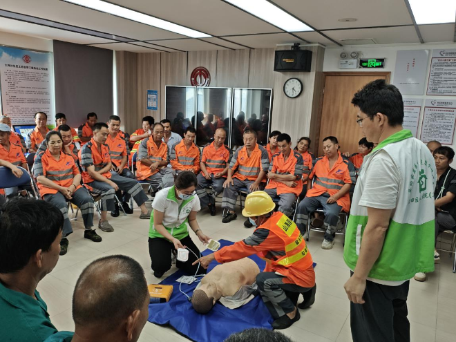培訓中,方醫(yī)生首先通過播放心肺復蘇、氣道異物梗阻處理、中暑及溺水等常見急救科普視頻,再通過通俗易懂的語言,講解了場景的理論知識,重點強調(diào)了黃金急救時間的重要性,并結(jié)合真實案例分析了錯誤急救操作可能導致的后果,幫助現(xiàn)場參與者建立科學的急救認知。