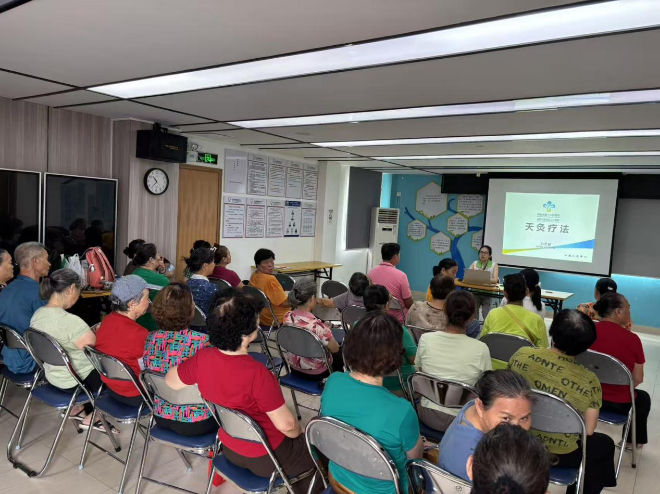 活動(dòng)邀請(qǐng)了來(lái)自大梅沙社康中心的馮醫(yī)生,為居民們?cè)敿?xì)講解了中醫(yī)“冬病夏治”的理論基礎(chǔ),三伏天是最佳調(diào)養(yǎng)身體、預(yù)防疾病的黃金時(shí)期,以及三伏貼的作用原理、適用病癥,貼敷注意事項(xiàng)。講座中,馮醫(yī)生著重介紹道:“三伏貼是依據(jù)中醫(yī)‘天人相應(yīng)’的理論,在三伏天陽(yáng)氣最盛之時(shí),將特定中藥貼敷于人體穴位,通過(guò)藥物對(duì)穴位的刺激,激發(fā)經(jīng)絡(luò)氣血的運(yùn)行,從而調(diào)整人體陰陽(yáng)平衡,增強(qiáng)機(jī)體免疫力,達(dá)到防治疾病的目的。如:慢性支氣管炎、過(guò)敏性鼻炎、虛寒性胃痛等冬季易發(fā)作的疾病,都可以通過(guò)三伏貼進(jìn)行調(diào)理?!本用駛兙劬珪?huì)神地聆聽(tīng),不時(shí)拿出手機(jī)拍照記錄重點(diǎn)內(nèi)容,還積極提問(wèn),現(xiàn)場(chǎng)互動(dòng)氛圍熱烈。