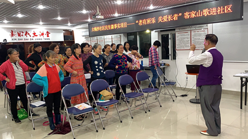 此次培訓邀請了深圳客家山歌優(yōu)秀歌唱家朱國輝老師授課,開課時間:5月至10月每周二、四下午2:30-4:00,共開展40場,轄區(qū)老年愛好者均可免費參加。