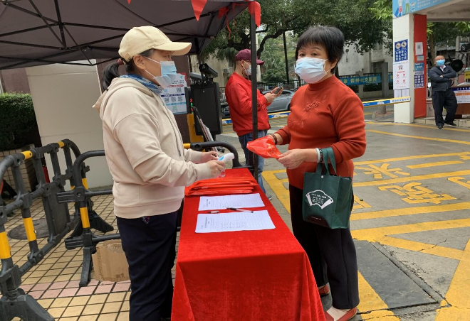 為避免活動(dòng)現(xiàn)場(chǎng)人員集聚,社區(qū)與3名書法老師溝通,提前寫好大部分春聯(lián)供居民選擇,減少大家在現(xiàn)場(chǎng)的逗留時(shí)間,有特別要求的居民也可請(qǐng)老師現(xiàn)場(chǎng)揮毫潑墨,書寫春聯(lián)。根據(jù)疫情防控要求,安排一名工作人員在入口處對(duì)前來(lái)領(lǐng)取對(duì)聯(lián)的居民測(cè)量體溫,提醒必須佩戴好口罩,排隊(duì)間隔1米以上,出示健康碼與核酸陰性證明,嚴(yán)格控制現(xiàn)場(chǎng)人數(shù)。