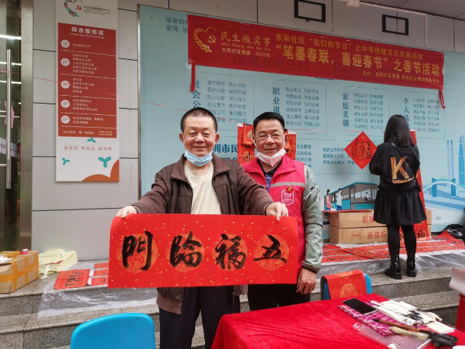 為弘揚(yáng)中國(guó)傳統(tǒng)文化,豐富居民群眾文化生活,營(yíng)造喜慶、祥和的節(jié)日氛圍。近日,在新春佳節(jié)到來(lái)之際,東和社區(qū)黨委組織開(kāi)展了“筆墨春聯(lián)、喜迎春節(jié)”送春聯(lián)活動(dòng)。
