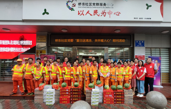 為扎實推進社區(qū)黨建工作,充分發(fā)揮黨員先鋒模范作用,7月18日下午,橋東社區(qū)組織各支部書記、黨員志愿者開展“夏日送清涼,慰問暖人心”主題黨日活動,為在高溫下堅守崗位、任勞任怨、持續(xù)奮戰(zhàn)的環(huán)衛(wèi)工人送上一份關愛。