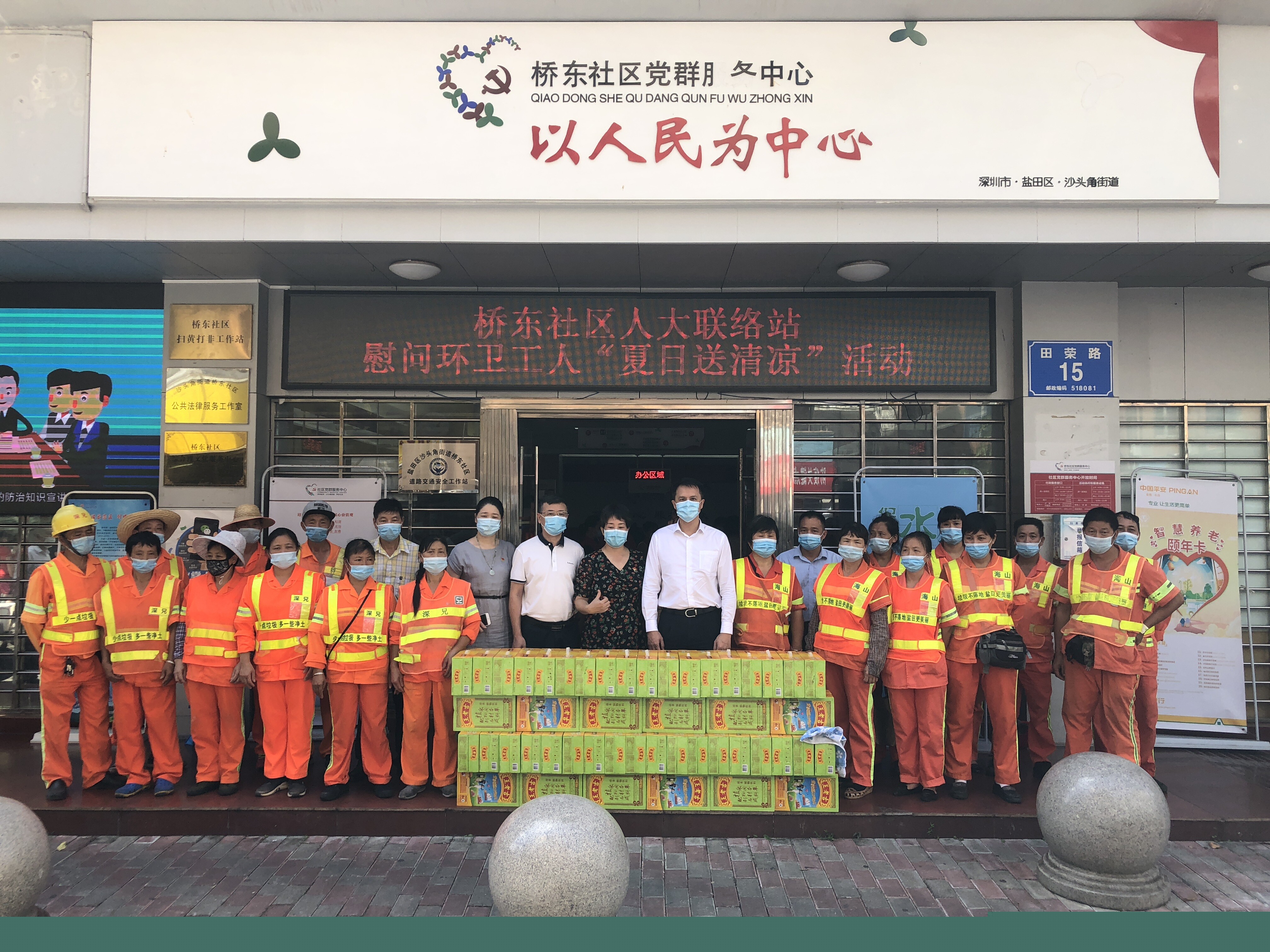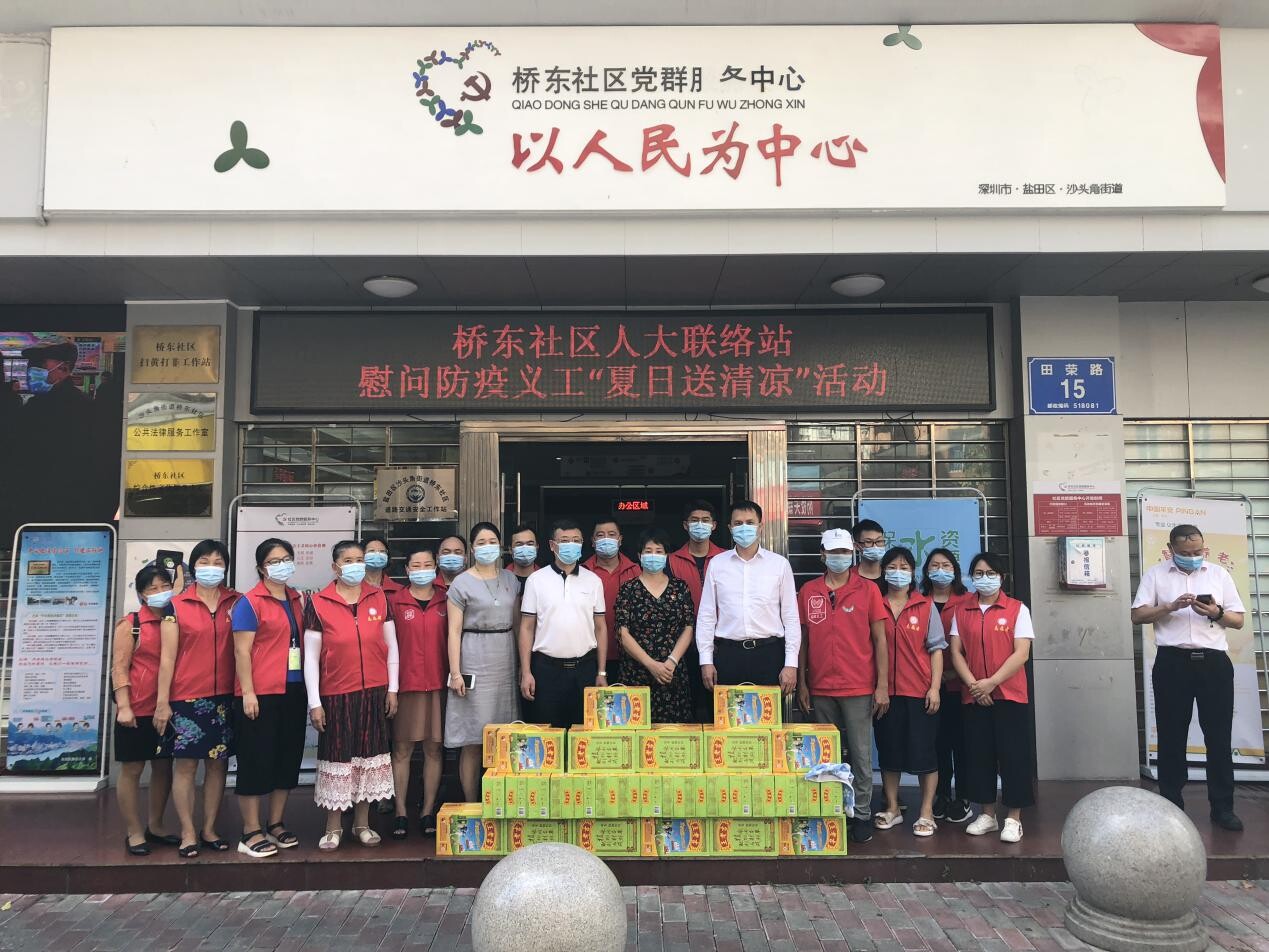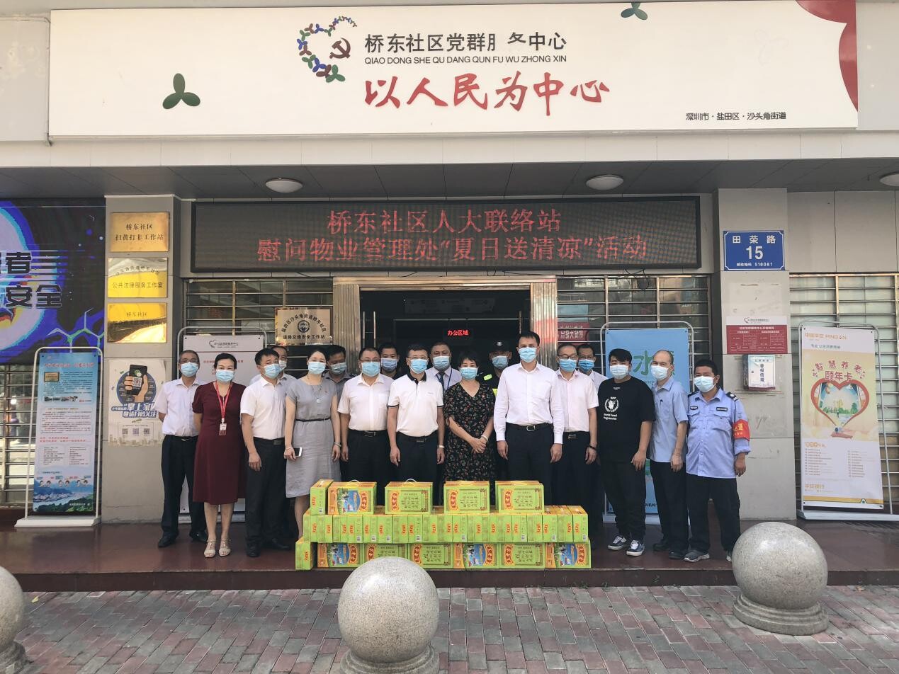 六月以來,我市進入了高溫酷暑季節(jié)。為保障疫情防控工作正常開展,鹽田區(qū)沙頭角街道橋東社區(qū)人大聯(lián)絡(luò)站組織駐站人大代表開展“夏日送清涼”慰問活動。為在高溫下堅守崗位、任勞任怨、持續(xù)奮戰(zhàn)在抗疫一線環(huán)衛(wèi)工人、物業(yè)管理工作人員及防疫義工送上一份清涼,捎去一句問候,用實際行動關(guān)心和慰問他們。