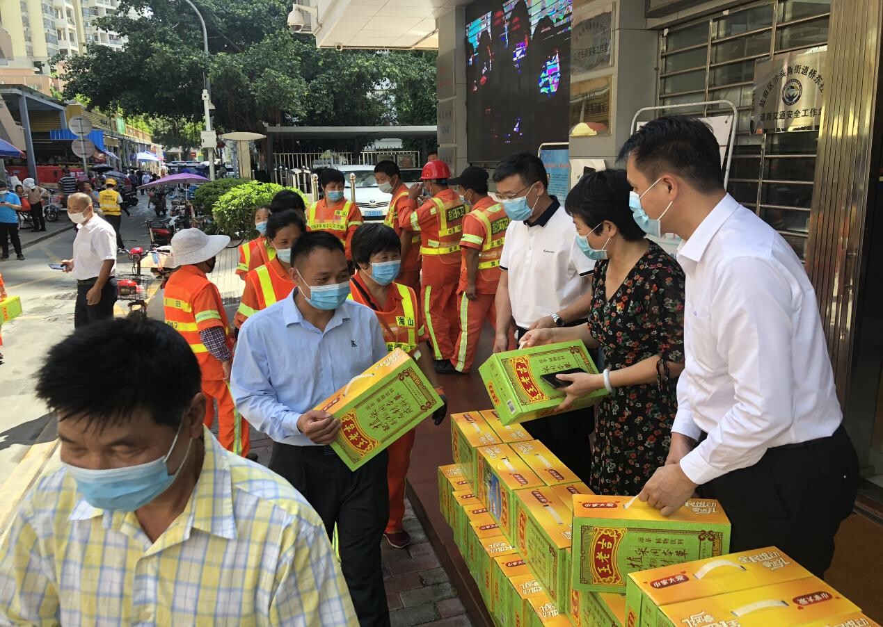 慰問中,人大代表對他們不懼高溫仍堅守崗位,表現(xiàn)出良好的精神風(fēng)貌表示敬意,并叮囑他們高溫天氣應(yīng)注意自身身體健康,謹防中暑。隨后向環(huán)衛(wèi)工人、物業(yè)管理工作人員、防疫義工贈送了精心準備的王老吉涼茶,同時對他們的辛勤勞動表達了感謝和敬意。雖然這些涼茶并不貴重,但它表達了代表們的濃濃情意,也給炎炎夏日帶來一絲愜意、一縷清涼。通過夏日送清涼活動,充分體現(xiàn)了人大代表“我為民、我履職、我行動”的理念,也體現(xiàn)了人大代表對防疫一線工作者的關(guān)心和愛護,更好地為疫情防控工作保駕護航。此次活動共派發(fā)王老吉160箱,取得了良好的效果。