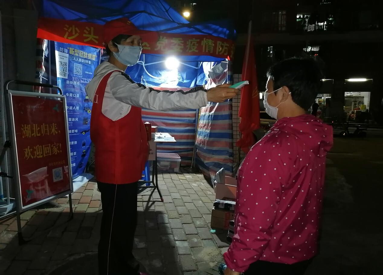 二月初,抗疫工作在沙頭角社區(qū)開展,各個(gè)體溫監(jiān)測(cè)點(diǎn)設(shè)置,使得工作人員嚴(yán)重不足,得知這一情況,王祥珍第一個(gè)來到社區(qū)報(bào)名參加卡點(diǎn)值守工作,天氣尚寒,她主動(dòng)提出負(fù)責(zé)每天早晚班值守。面對(duì)居民的不理解和不耐煩,她會(huì)耐心解釋體溫監(jiān)測(cè)的意義和重要性。不值班的時(shí)候,她會(huì)煮上一壺?zé)釟怛v騰的姜茶送給卡點(diǎn)值班人員暖暖身體。面臨工作人員不足時(shí),她動(dòng)員丈夫和兒子加入到值守的隊(duì)伍中來,為社區(qū)分擔(dān)壓力風(fēng)雨無阻。