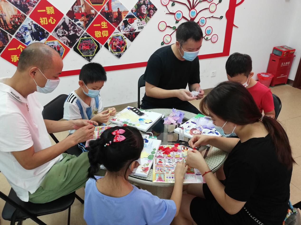 活動(dòng)開(kāi)始,社工講解了花瓣畫(huà)的制作步驟及注意事項(xiàng),接下來(lái),孩子們選取了自己喜歡的圖案,按照制作步驟,與家長(zhǎng)一同制作花瓣畫(huà)。首先將花瓣一張張分開(kāi),然后對(duì)折再對(duì)折,在對(duì)折的地方涂上膠水,把花瓣放在合適位置上再摁一會(huì)兒,還要注意花瓣的層次感,讓膠水粘合的更加牢固,所有花瓣粘好后,最后裝飾上彩鉆,一副副漂亮的花瓣畫(huà)呈現(xiàn)在眼前,看著五彩斑斕的作品,大家露出了開(kāi)心的笑容。