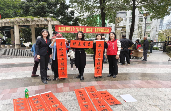 新春佳節(jié)將至,為弘揚中華優(yōu)秀傳統(tǒng)文化,豐富職工群眾的精神文化生活,營造歡樂祥和的節(jié)日氛圍,1月21日至23日,由鹽田街道總工會主辦,明珠社區(qū)工聯(lián)會和東海社區(qū)工聯(lián)會承辦的“寫春聯(lián)·送祝?!睖嘏履昊顒诱絾印;顒友堓爡^(qū)書法老師,為一線職工群眾寫春聯(lián)、送祝福。