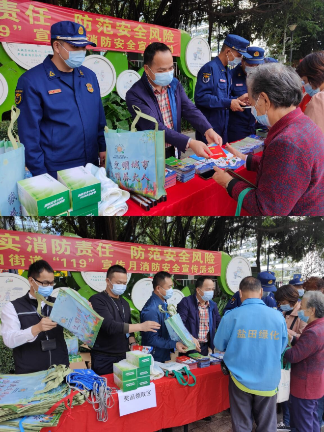 為進(jìn)一步提升全民消防安全意識(shí),11月11日下午,鹽田街道在明珠文化廣場舉行“119”消防宣傳月宣傳活動(dòng),街道辦事處副主任、應(yīng)急管理辦公室主任曾祥坤,鹽田消防救援站站長黃曉光等出席了活動(dòng)。
