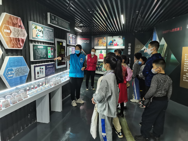 活動中,禁毒社工帶領(lǐng)青少年,依次參觀中國禁毒史、毒品知識、毒品危害和毒品預(yù)防四大展區(qū),讓大家認(rèn)識毒品種類、危害及預(yù)防技巧,重點(diǎn)體驗(yàn)“LED人體血液模型”、“吸毒后的你”等設(shè)備,引導(dǎo)青少年深刻認(rèn)識毒品危害,提醒青少年防范偽裝類新型毒品,不可輕信陌生人,更不能隨意接受陌生人提供的飲品和食品,養(yǎng)成良好的生活習(xí)慣,自覺遠(yuǎn)離毒品。