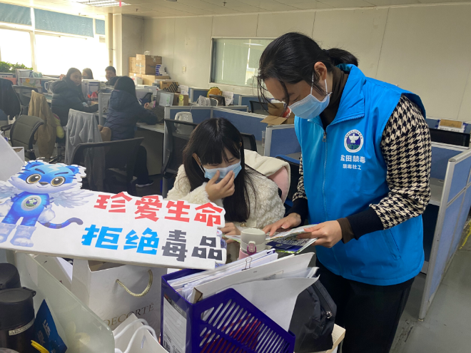 隨后,禁毒社工向企業(yè)員工宣傳毒品知識、危害與預(yù)防技巧,特別強調(diào)了禁毒的相關(guān)法律法規(guī),提醒企業(yè)要嚴格落實主體責任意識,引導(dǎo)企業(yè)做好員工禁毒培訓(xùn),提高易制毒化學(xué)品的管理水平,筑牢企業(yè)禁毒源頭。