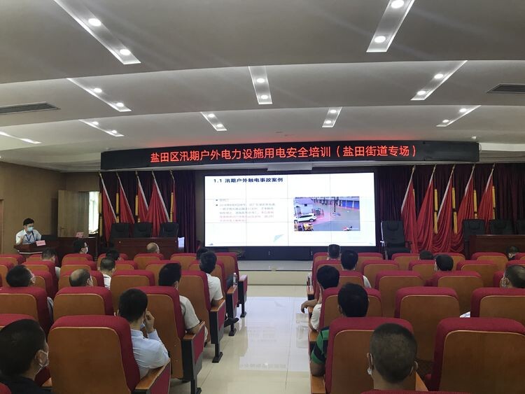 為切實(shí)預(yù)防和遏制汛期戶外觸電事故的發(fā)生,增強(qiáng)用電安全認(rèn)識(shí)水平,提高轄區(qū)涉電安全工作人員用電安全隱患排查整治能力,2020年6月11日下午,由區(qū)工信局委托的深圳富華消防電力安全技術(shù)有限公司電力專家林坤華到鹽田街道做汛期戶外電力設(shè)施用電安全培訓(xùn)。轄區(qū)物業(yè)公司及相關(guān)企業(yè)涉電安全工作人員共60余人參加了此次培訓(xùn)。
