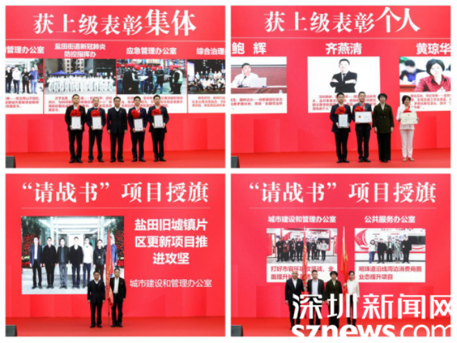 隨后,谷云宏、曾紅英等領(lǐng)導(dǎo)向“為我點(diǎn)贊”個(gè)人與集體頒獎(jiǎng),并向下達(dá)任務(wù)書的“請(qǐng)戰(zhàn)書”項(xiàng)目授旗。鹽田街道緊緊圍繞區(qū)委區(qū)政府部署的重點(diǎn)目標(biāo)任務(wù),梳理了各委辦上報(bào)的攻堅(jiān)克難“請(qǐng)戰(zhàn)書”項(xiàng)目33個(gè),把每個(gè)任務(wù)落實(shí)到具體項(xiàng)目、每個(gè)項(xiàng)目量化到具體指標(biāo)、每個(gè)指標(biāo)明確到具體人頭,倒排進(jìn)度、掛圖作戰(zhàn),一件一件抓、一項(xiàng)一項(xiàng)督,堅(jiān)決破除“等待、觀望”的思想,樹立“拼、爭(zhēng)、搶”的意識(shí),集中有限的時(shí)間和精力狠抓重點(diǎn)工作的推進(jìn)、重點(diǎn)環(huán)節(jié)的強(qiáng)化、重點(diǎn)問(wèn)題的解決,全力推進(jìn)各項(xiàng)工作決戰(zhàn)決勝。