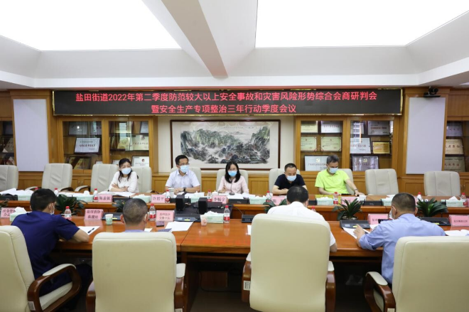 4月27日下午,鹽田街道召開2022年第二季度防范較大以上安全事故和災害風險形勢綜合會商研判會暨安全生產專項整治三年行動季度會議。