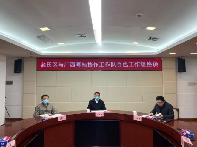 2023年1月16日下午,廣西百色市政府黨組成員、副市長,粵桂協(xié)作工作隊副領(lǐng)隊、百色工作組組長劉得勝同志率隊來訪鹽田,區(qū)委副書記、政法委書記谷云宏同志組織召開座談會,交流探討有關(guān)工作。鹽田區(qū)副區(qū)長李強強同志以及區(qū)工業(yè)和信息化局參加活動。