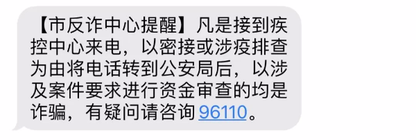 對(duì)疫情有任何疑問(wèn),可主動(dòng)聯(lián)系衛(wèi)?。部兀┎块T或住處所屬街道社區(qū)工作人員進(jìn)行核實(shí)。懷疑遇到詐騙可撥打96110全國(guó)反詐專線進(jìn)行咨詢。