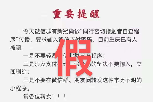 聊天群里出現(xiàn)“快速出核酸檢測結(jié)果” “加急最快半個(gè)小時(shí)” “家里也能做核酸檢測”的信息,只要額外付費(fèi)便能辦到,都是騙錢的套路。