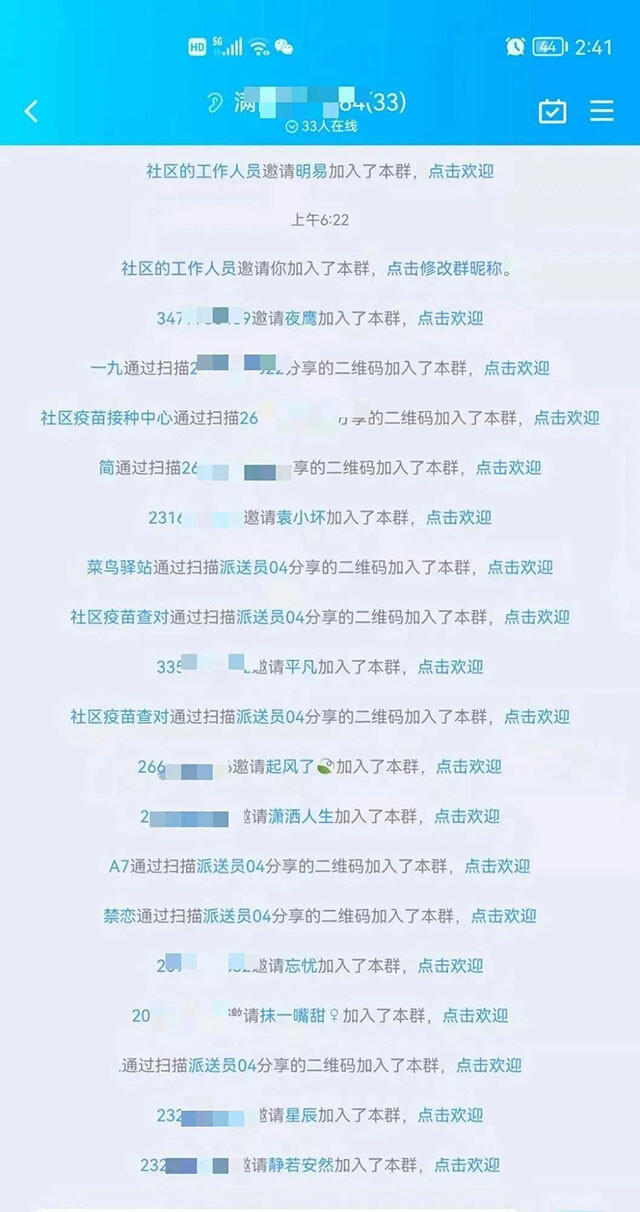 詐騙分子通過號(hào)商批量購買賬號(hào),偽裝成“疫苗接種普查調(diào)查員”或“回訪員”,以社區(qū)工作人員的名義添加好友,再將受害人拉群。